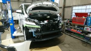 作業日誌 新車ヴェルファイア T様、この度はヴェルファイアのご成約ありがとうございます! 早く納車できるよう頑張りますね まずはエアロの取付。 純正グリルとバンパーを外して 1人だと結構しんどいです。 が、傷でも付いたら大変なので慎重に慎重に作業します。 モデリスタのバンパー装着!写真だと見づらいですがLEDラインがカッコイイです 撮影し忘れましたが続けてサイド・リヤも取付けました。