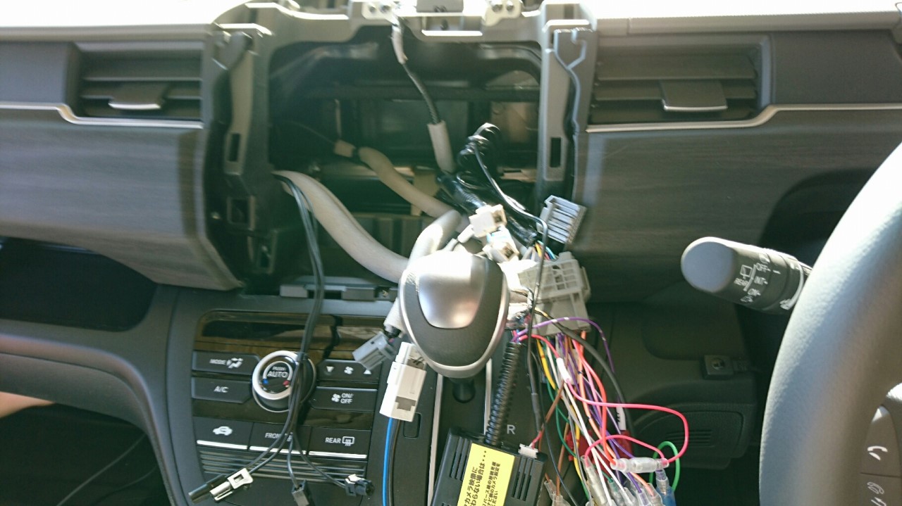 作業日誌 新車フリード+ K様、この度はフリードご成約ありがとうございます。 新しくなったフリード、評判通りの完成度の高さで売れてるのも納得です。 今回はカロッツェリアのナビを取付けます。 まずは作業しやすいようにバラバラに。 今回も登場!純正バックカメラを生かします。 もちろん映像切替(角度切替)にも対応してます。 完成しました!純正ステアリングリモコンも使えます。 小さくて見づらいですが、ハンドル左のオレンジ色のスイッチでバックカメラの映像を切替できます。