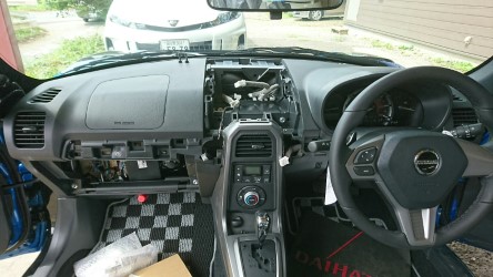 新車コペン Y様、この度はコペンのご成約ありがとうございます。 受注生産の為に永らくお待たせしましたが、ようやく入庫しました! 鮮やかなブルー!カッコイイです。 今回はカロッツェリアのヘッドユニット(ナビ)のみ取付けです。 急いで取付けして早くお届けしますね。 と言うことで完成です! 社外なのでもちろん走行中のTVナビ操作も可能です。 お待たせしました!