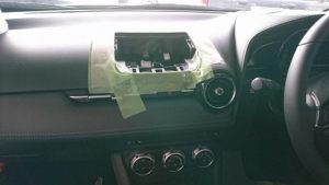 作業日誌 新車CX-3 マツダ CX-3 メーカーオプションのナビにTVキットの取付けます。 この車種は特殊な形状のナビなので外し方も特殊です。 ダッシュボード上の作業なので必要以上に養生して慎重にモニターを取り外していきます。 モニター裏にキャンセラーを取付し、切替スイッチをステアリング横に設置して完了。 取付作業お任せください。