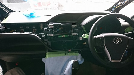 作業日誌 新車VOXY もはや不動の人気車トヨタ VOXY ナビ・バックカメラ・ETCの取付です。 取付けるのは社外ナビですが7インチなので、純正のパネルをこのまま流用します。 いつも通りオーディオ廻りを中心にバラしていきます。ETC用に運転席の足元、アンテナ用にフロントピラーもバラします。 続いてバックカメラも同時進行。 メッキガーニッシュを慎重に取外します。 バックドアのトリムを外すと内側はこんな感じです。純正のカメラなので、もともとバックドア内まで来てるカプラーに差し込むだけでOK。 取付してトリム・ガーニッシュを復元。純正なのでカメラの角度もバッチリです。 ETCも純正位置に取り付けました。 社外ですので多少空く隙間にはスポンジテープで塞ぎます。 全ての設定・作動確認して作業終了です。有難うございました。
