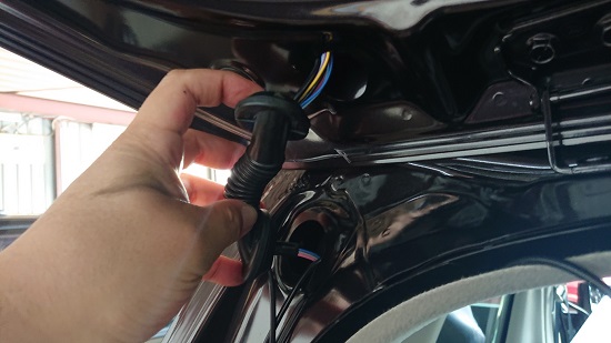 カメラを仮固定したら配線をバックドア内から車内に通します。