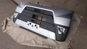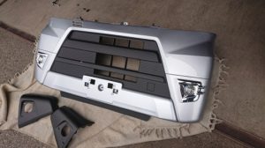 フォグランプの廻りの黒いパネルをボディ同色のシルバーに交換します。