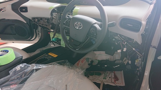 作業日誌 新車プリウス ここ数日の暑さは尋常じゃなく老体にはこたえます。連日ニュースでも報じてるように外出される方は熱中症対策を万全に。 さて本日はトヨタ プリウスです。 作業内容はアルパイン ビッグX(ナビ・ETC・ドラレコ)一式の取付け。 しかし内装が白レザーとピアノブラックって、作業する側には嫌がらせとしか思えません(笑) 作業前から既に車両周りは38℃。 見なきゃ良かった・・・。 画像の通り内装が真っ白なので汗の一滴も落とさぬよう気を使いながら作業していきます。 ETCは純正位置にインストール。 アルパイン製の車種専用キットなのでワンタッチでキレイに設置できます。 ドライブレコーダのみカロッツェリア製。 こちらもセーフティセンスのユニット横にキレイに配置できました。 配線をまとめ作動確認後、復元して終了。純正のフェイスパネルが9インチなので、そのまま使用します。 しかし純正パネルが9インチって、時代が変わりましたね。