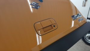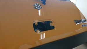 スズキ車のカメラ取付けはドアハンドルごと交換するので、とりあえず外します。