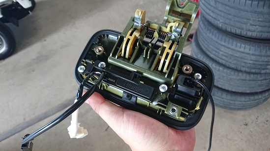 内側からリンクワイヤー、スマートスイッチとボルト3本を外したら取れます。